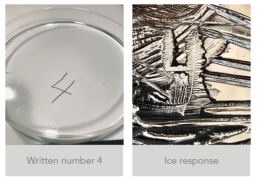 The photos I am about to show you are from Veda’s website. To get to these images, Veda takes photos of the movement from water into ice. She freezes water in Petri dishes and uses her smartphone camera to record the results. She offers courses and downloads that teach you how to conduct this research for yourself. Check it out.